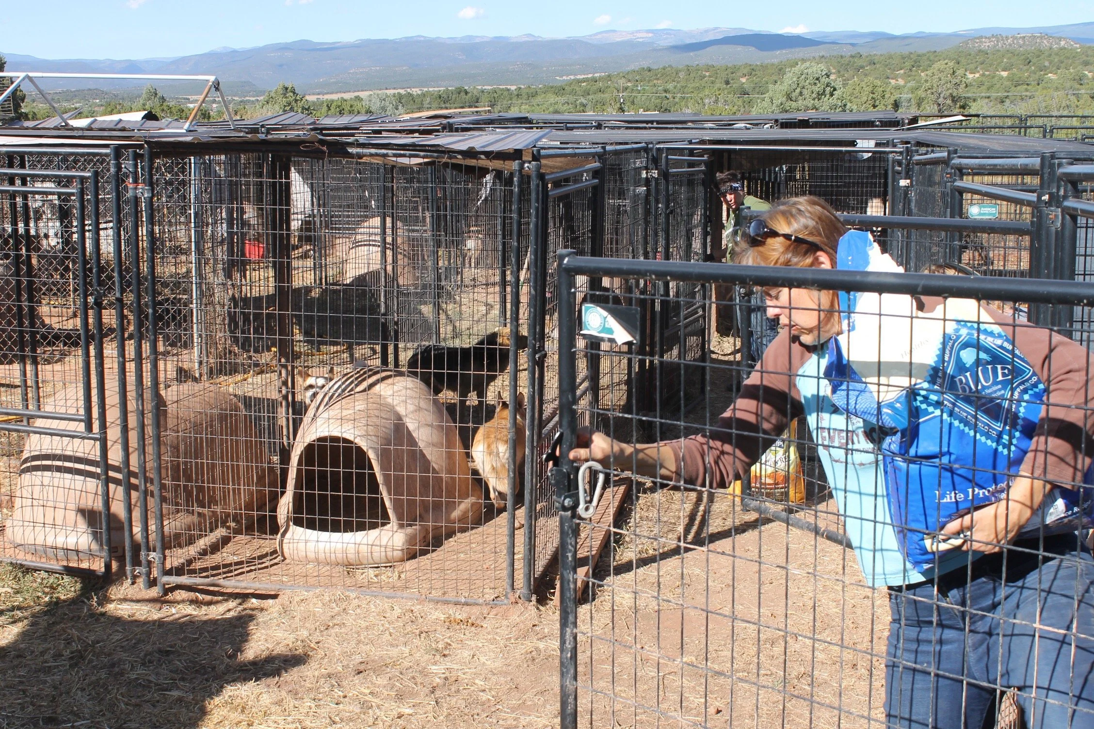 Feeding the dogs at a hoarding case in Rowe, NM